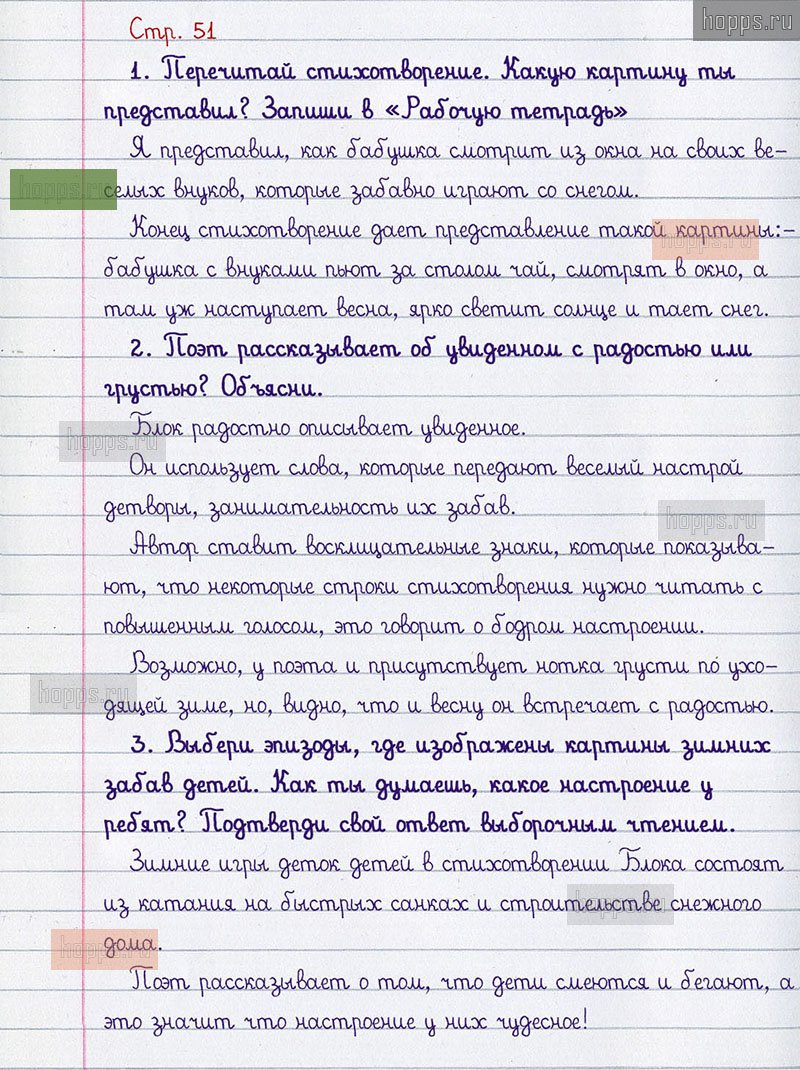 Подробные ответы к вопросам и заданиям на 51 странице 2 части учебника по литературному чтению авторов Л.Ф. Климанова, В.Г. Горецкий, М.В. Голованова для учащихся 3 класса.