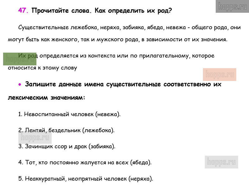 Готовые ответы к 47 упражнению 2 части рабочей тетради по русскому языку для учащихся 3 класса, автора В.П. Канакина, Школа России, 2019 г.