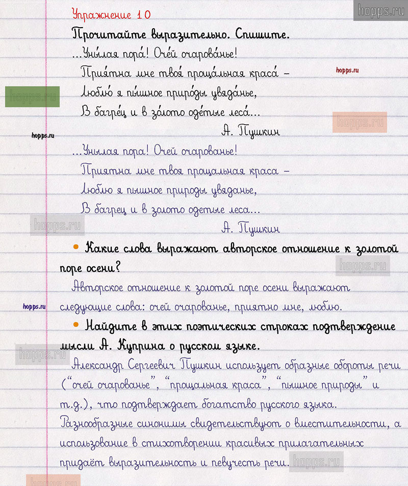 Подробные ответы к 10 упражнению 1 части учебника по русскому языку авторов В.П. Канакина, В.Г. Горецкий для учащихся 3 класса. Наша речь и наш язык.