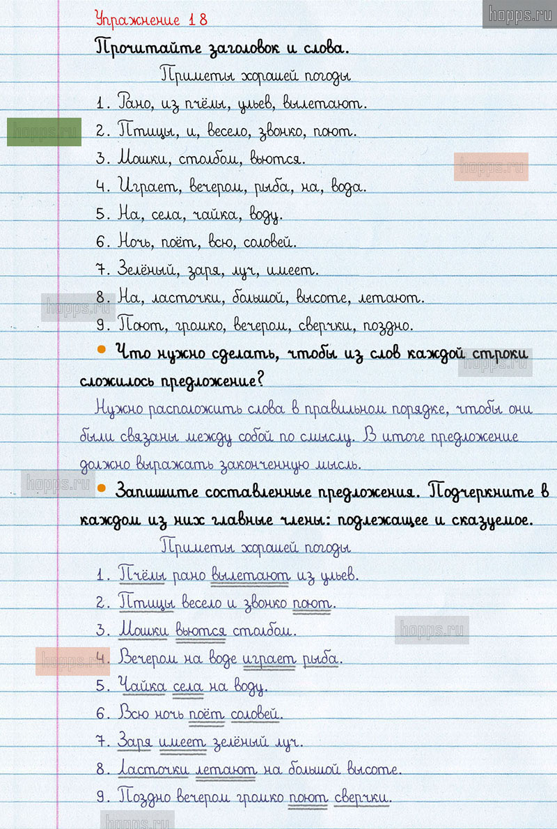 Подробные ответы к 18 упражнению 1 части учебника по русскому языку авторов В.П. Канакина, В.Г. Горецкий для учащихся 3 класса. Предложение.