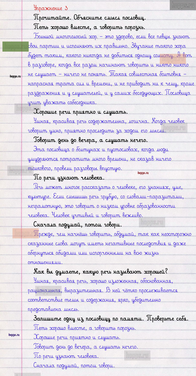 Подробные ответы к 3 упражнению 1 части учебника по русскому языку авторов В.П. Канакина, В.Г. Горецкий для учащихся 3 класса. Наша речь и наш язык.