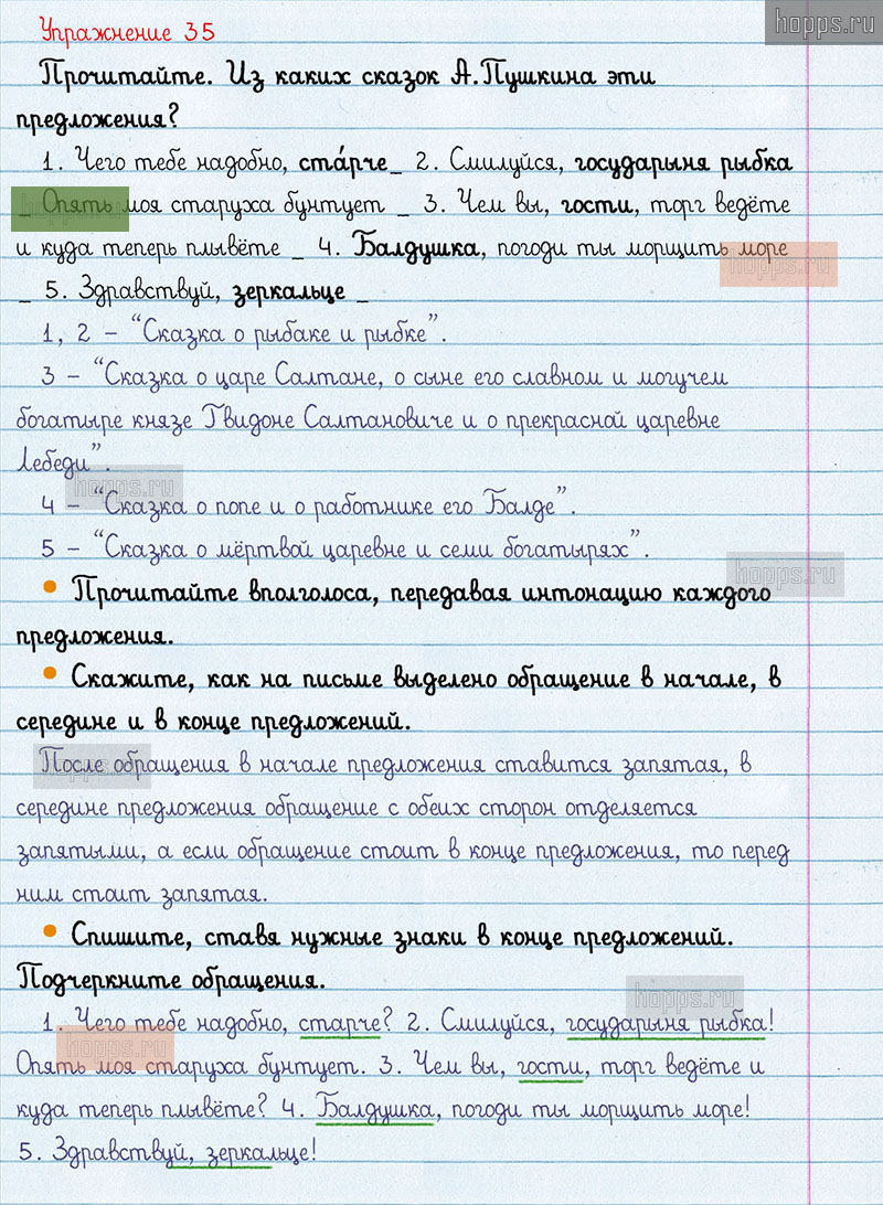 Подробные ответы к 35 упражнению 1 части учебника по русскому языку авторов В.П. Канакина, В.Г. Горецкий для учащихся 3 класса. Предложение.
