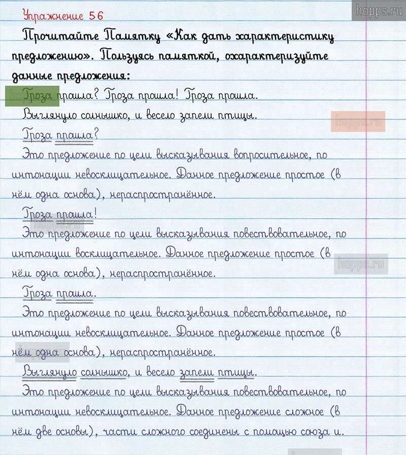 Подробные ответы к 56 упражнению 1 части учебника по русскому языку авторов В.П. Канакина, В.Г. Горецкий для учащихся 3 класса. Предложение.