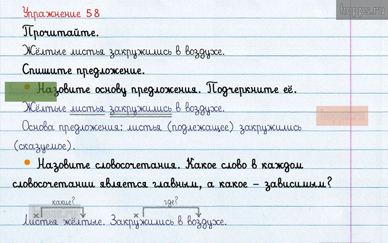 Подробные ответы к 58 упражнению 1 части учебника по русскому языку авторов В.П. Канакина, В.Г. Горецкий для учащихся 3 класса. Словосочетание.