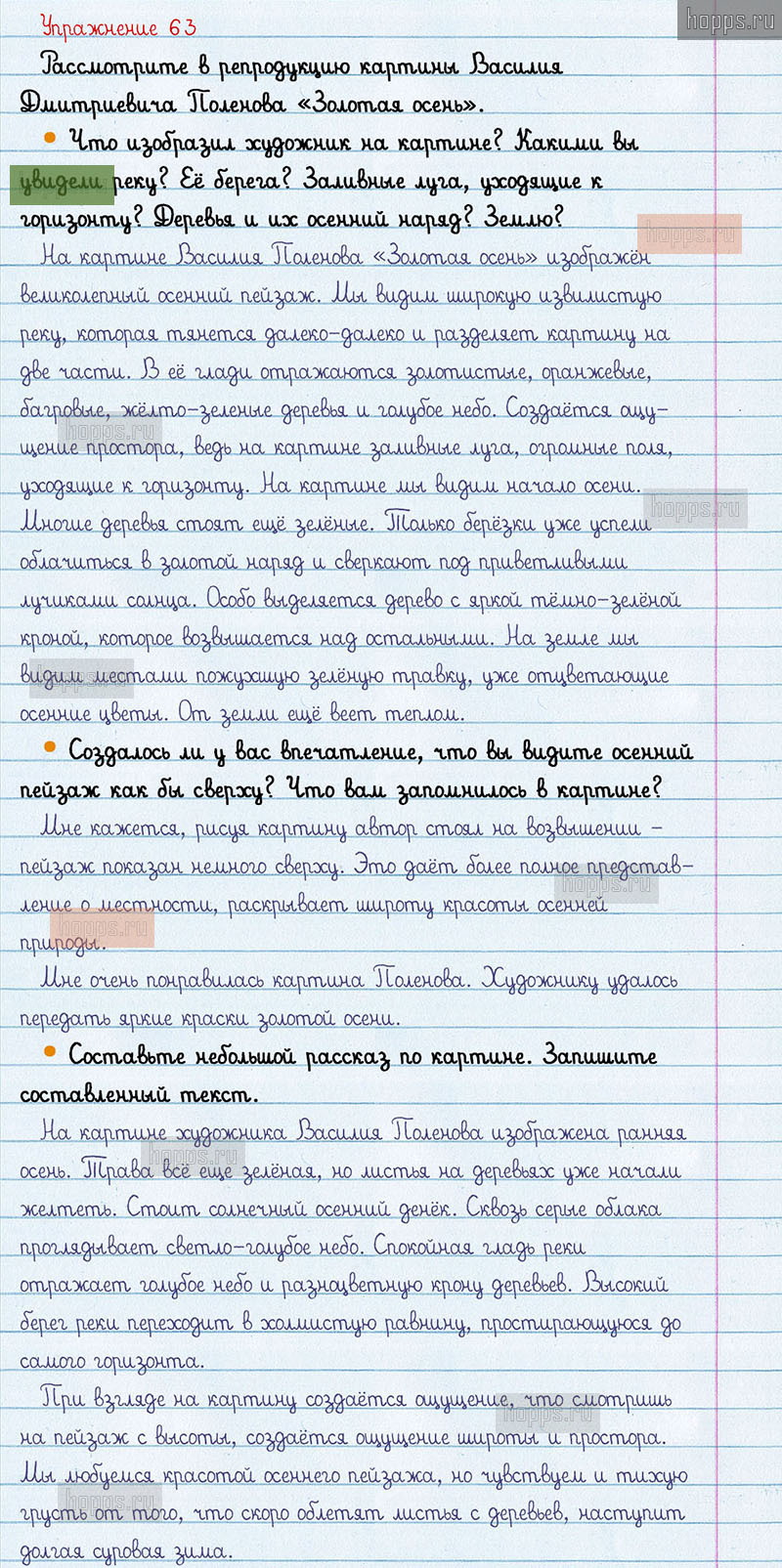 Подробные ответы к 63 упражнению 1 части учебника по русскому языку авторов В.П. Канакина, В.Г. Горецкий для учащихся 3 класса. Словосочетание.