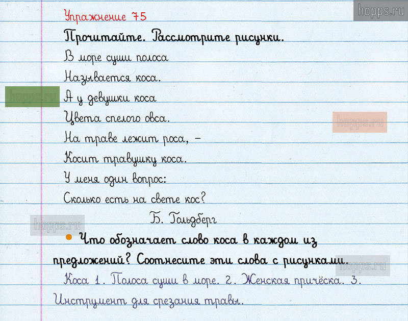Подробные ответы к 75 упражнению 1 части учебника по русскому языку авторов В.П. Канакина, В.Г. Горецкий для учащихся 3 класса. Лексическое значение слова.