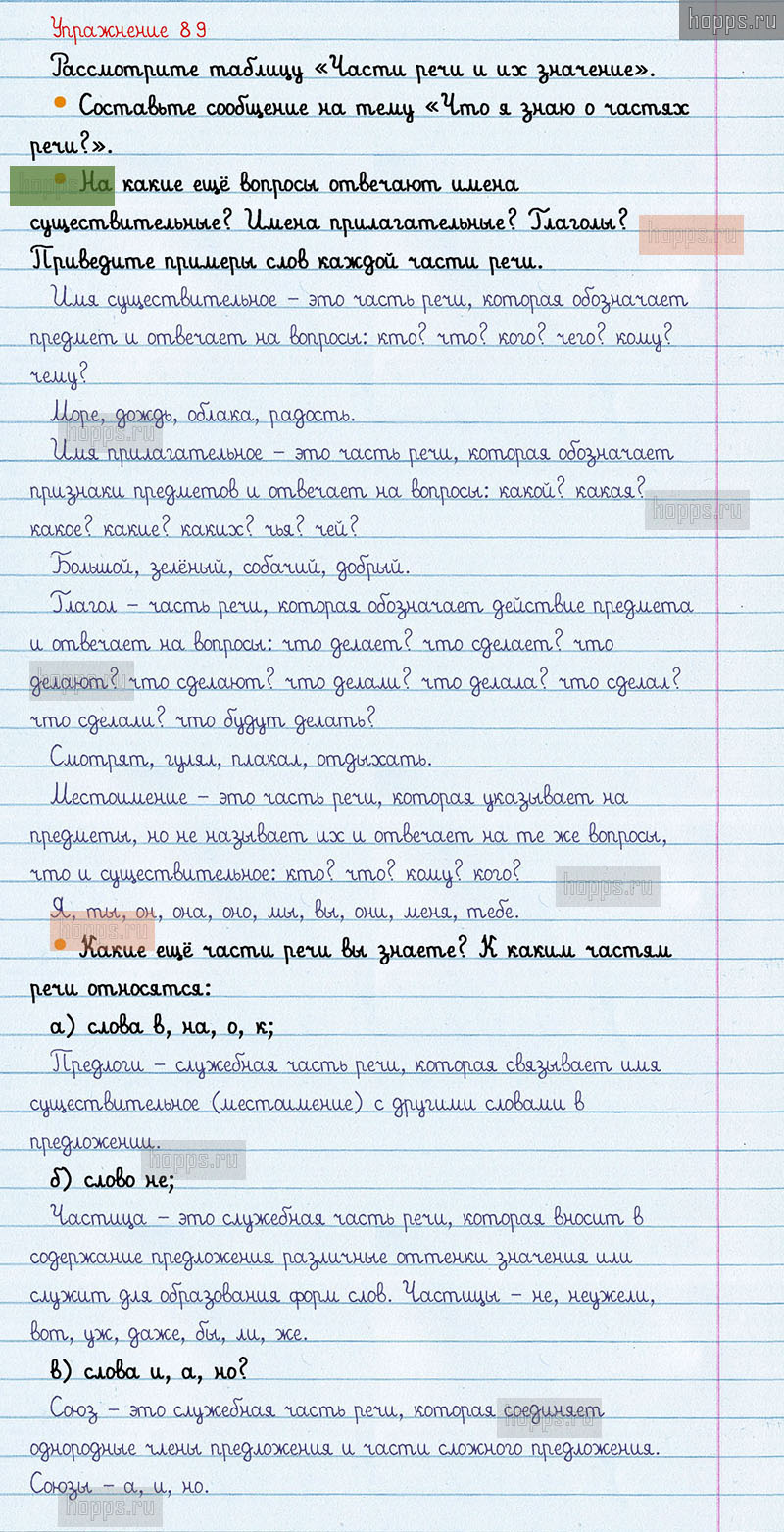 Подробные ответы к 89 упражнению 1 части учебника по русскому языку авторов В.П. Канакина, В.Г. Горецкий для учащихся 3 класса. Части речи.