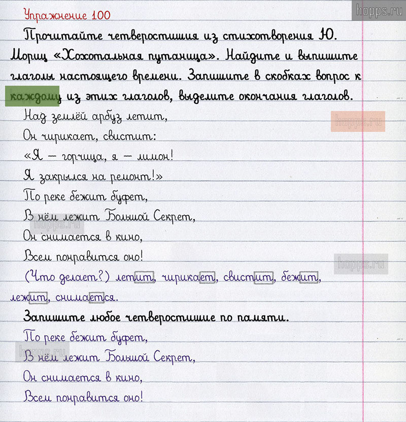 Готовые ответы к 100 упражнению 2 части рабочей тетради по русскому языку для учащихся 3 класса, авторов Л.Ф. Климанова, Т.В. Бабушкина, Перспектива, 2021 г.