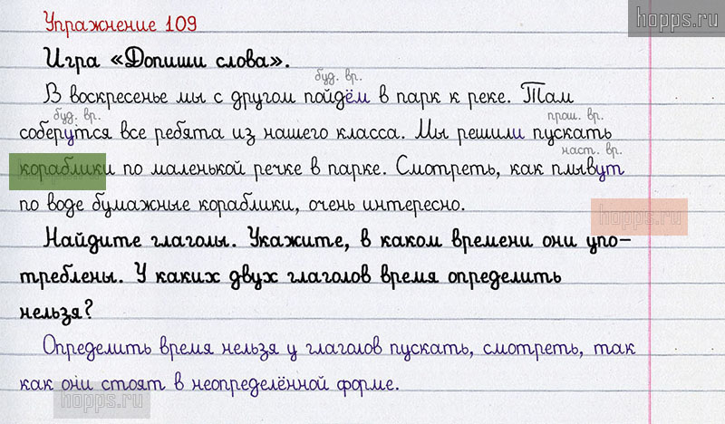 Готовые ответы к 109 упражнению 2 части рабочей тетради по русскому языку для учащихся 3 класса, авторов Л.Ф. Климанова, Т.В. Бабушкина, Перспектива, 2021 г.