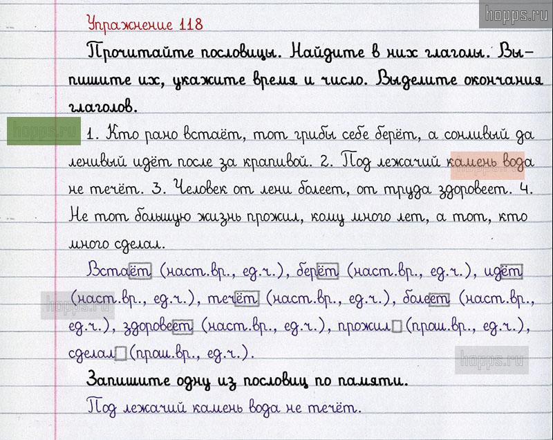 Готовые ответы к 118 упражнению 2 части рабочей тетради по русскому языку для учащихся 3 класса, авторов Л.Ф. Климанова, Т.В. Бабушкина, Перспектива, 2021 г.