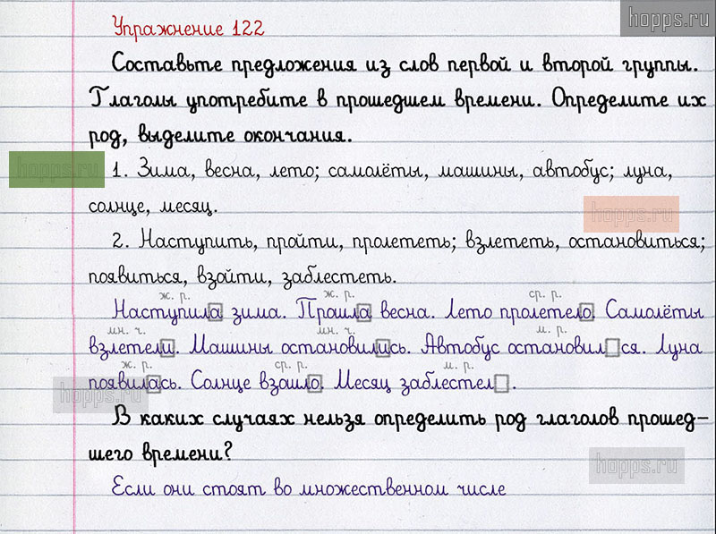 Готовые ответы к 122 упражнению 2 части рабочей тетради по русскому языку для учащихся 3 класса, авторов Л.Ф. Климанова, Т.В. Бабушкина, Перспектива, 2021 г.