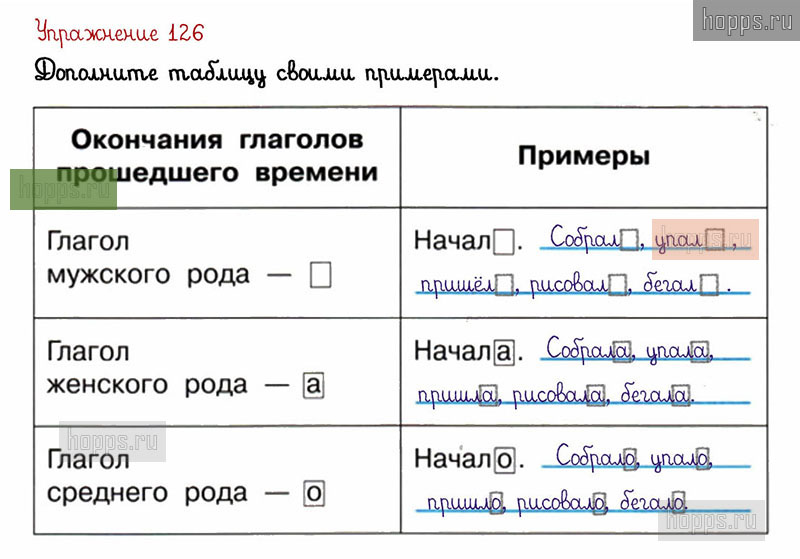 Готовые ответы к 126 упражнению 2 части рабочей тетради по русскому языку для учащихся 3 класса, авторов Л.Ф. Климанова, Т.В. Бабушкина, Перспектива, 2021 г.