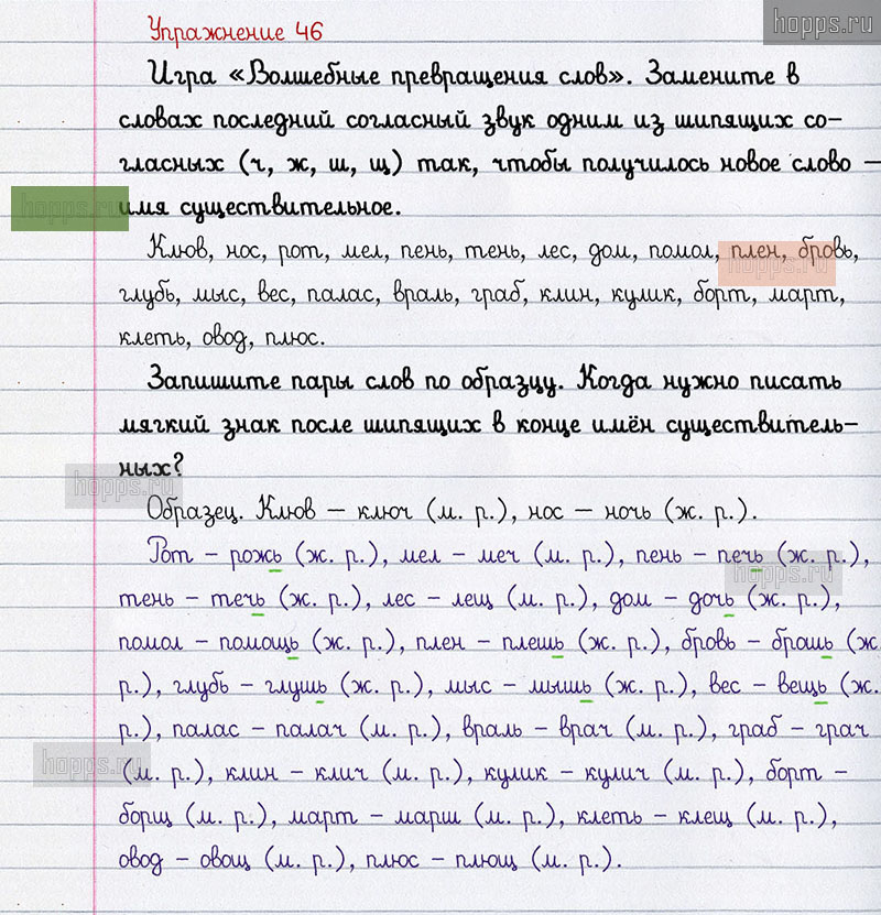 Готовые ответы к 46 упражнению 2 части рабочей тетради по русскому языку для учащихся 3 класса, авторов Л.Ф. Климанова, Т.В. Бабушкина, Перспектива, 2021 г.