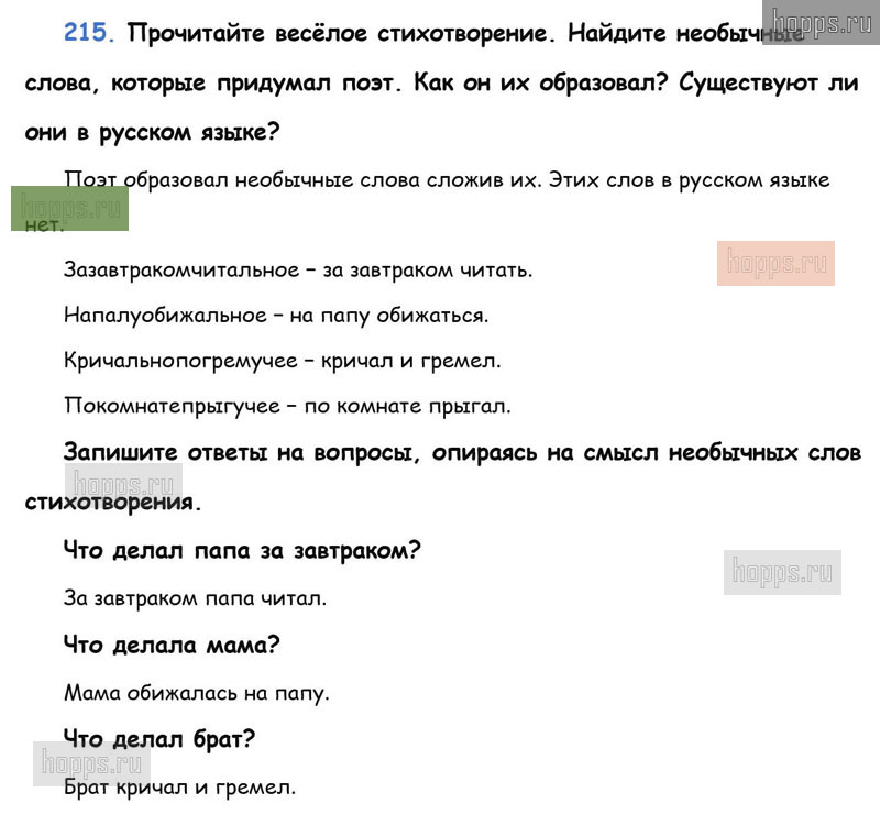 Готовые ответы к 215 упражнению 1 части учебника по русскому языку для учащихся 3 класса, авторов Л.Ф. Климанова, Т.В. Бабушкина, Перспектива, 2019 г.
