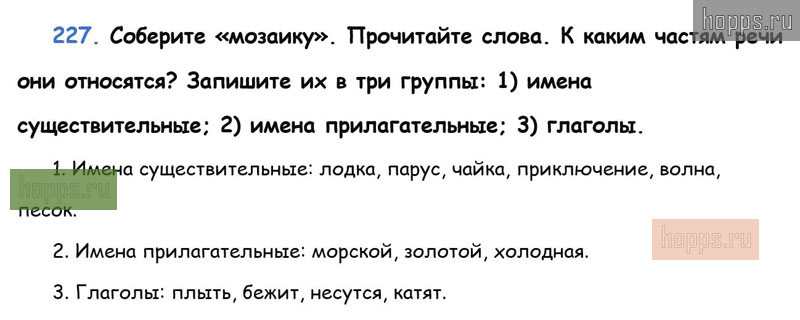 Готовые ответы к 227 упражнению 1 части учебника по русскому языку для учащихся 3 класса, авторов Л.Ф. Климанова, Т.В. Бабушкина, Перспектива, 2019 г.