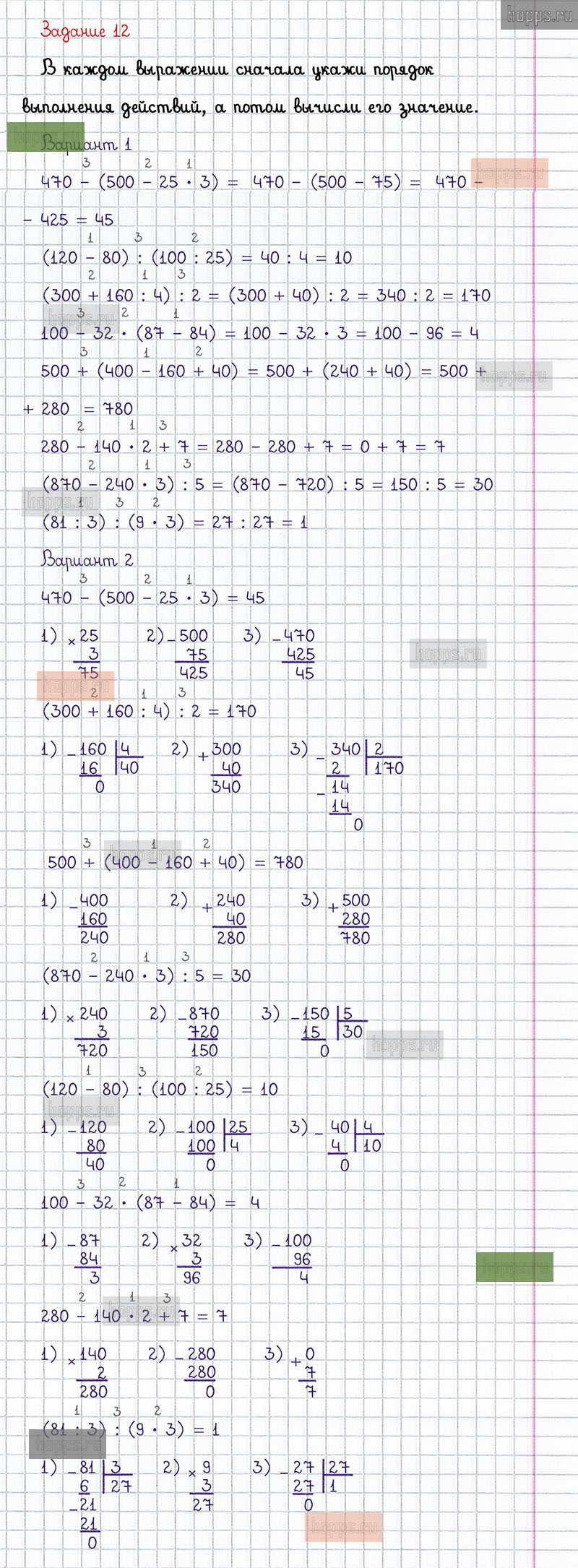 Готовые ответы к 12 заданию 1 части учебника по математике для учащихся 4 класса, автора М.И. Моро, Школа России, 2020 г.