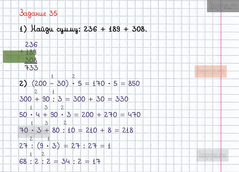 Готовые ответы к 35 заданию 1 части учебника по математике для учащихся 4 класса, автора М.И. Моро, Школа России, 2020 г.