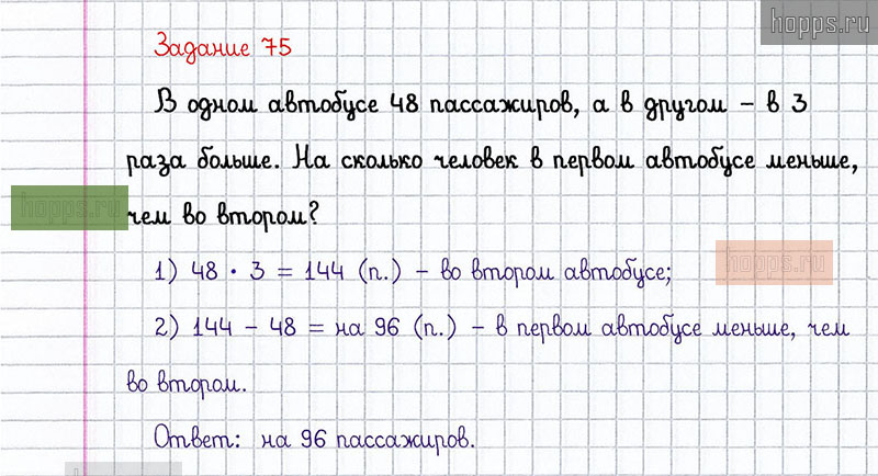 Готовые ответы к 75 заданию 1 части учебника по математике для учащихся 4 класса, автора М.И. Моро, Школа России, 2020 г.